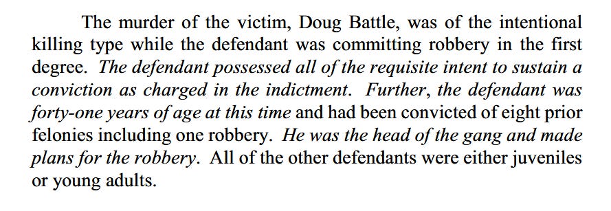 The trial took place so long ago that Burton was sentenced to death by electrocution, which is almost never used these days, and hasn’t been used in Alabama since 2002. He is obviously the kind of person who should be executed under the felony murder rule.